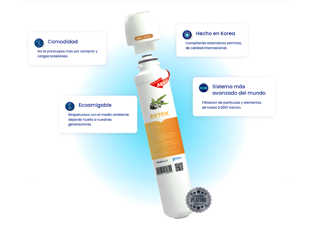 • Cuenta con nanotecnología que filtra partículas y elementos de hasta 0.0001 micrón.